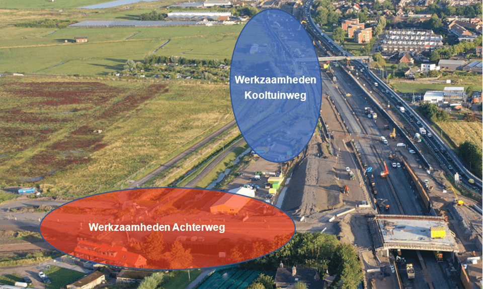 Van maandag 17 oktober tot en met vrijdag 18 november is de route Achterweg/Kooltuinweg afgesloten voor doorgaand verkeer. In deze periode voert Boskalis eerst werkzaamheden uit aan de Achterweg bij aansluiting Valkenburg-Oost en daarna aan de Kooltuinweg tussen de 2 nieuwe ongelijkvloerse aansluitingen.