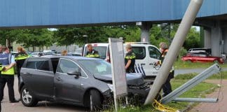 Auto botst op lantaarnpaal op veiling; twee gewonden