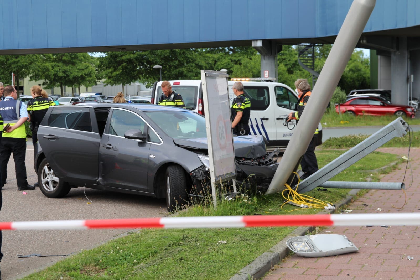 Op het veilingterrein van Royal Fora Holland in Rijnsburg is donderdagmorgen een auto tegen een paal gereden. Door de klap kwam de paal scheef te staan, raakte de auto beschadigd en vielen twee gewonden.
