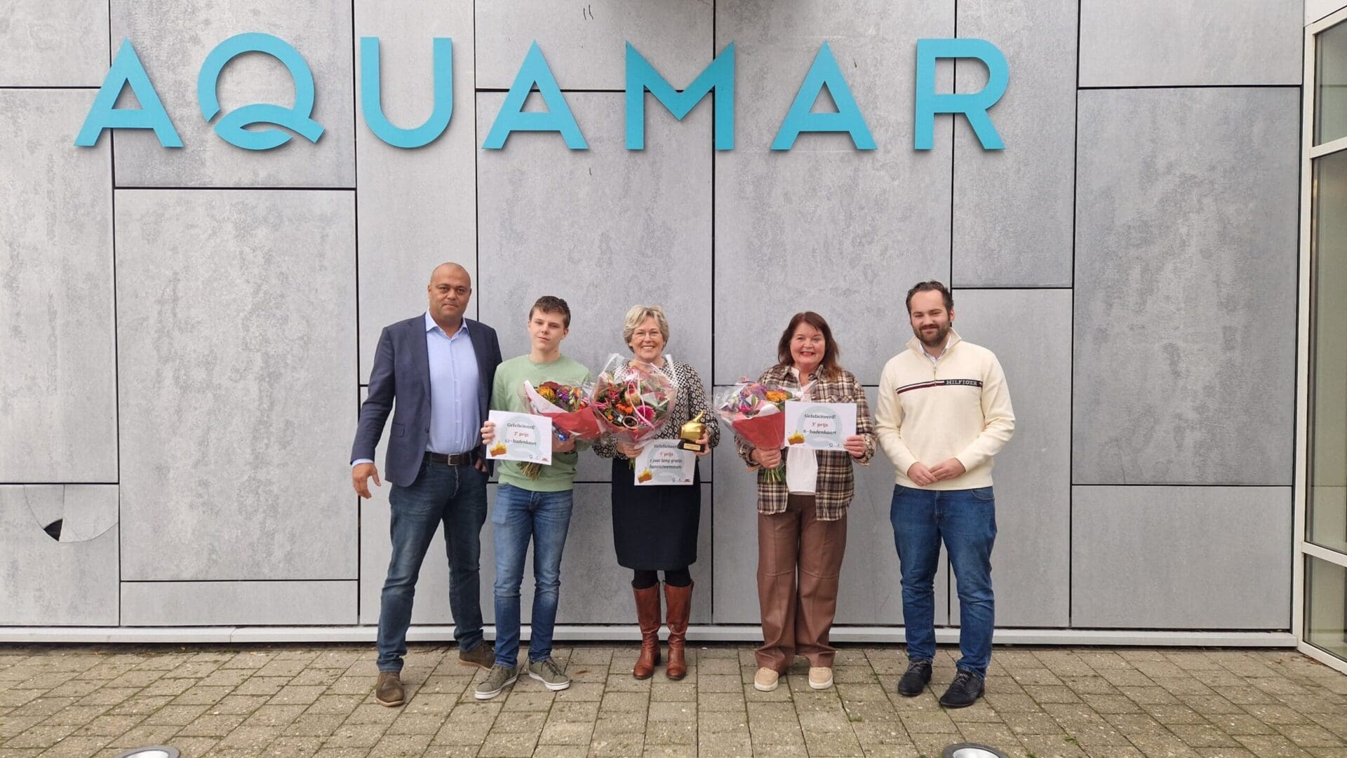 De winnaars ontvingen de prijs uit handen van Sportbedrijfdirecteur Vincent Venloo en Wethouder Sonny Spek. Die laatste sprak trotse woorden: ‘Wat ontzettend goed dat jullie ieder op jullie eigen manier met gezondheid bezig zijn gegaan. Jullie verdienen het om in het zonnetje gezet te worden.’ Directeur van Sportbedrijf Vincent Venloo vertelde dat hij het om diezelfde reden belangrijk vindt om met het zwembad aan de Lekker Bezig Prijs mee te werken.
