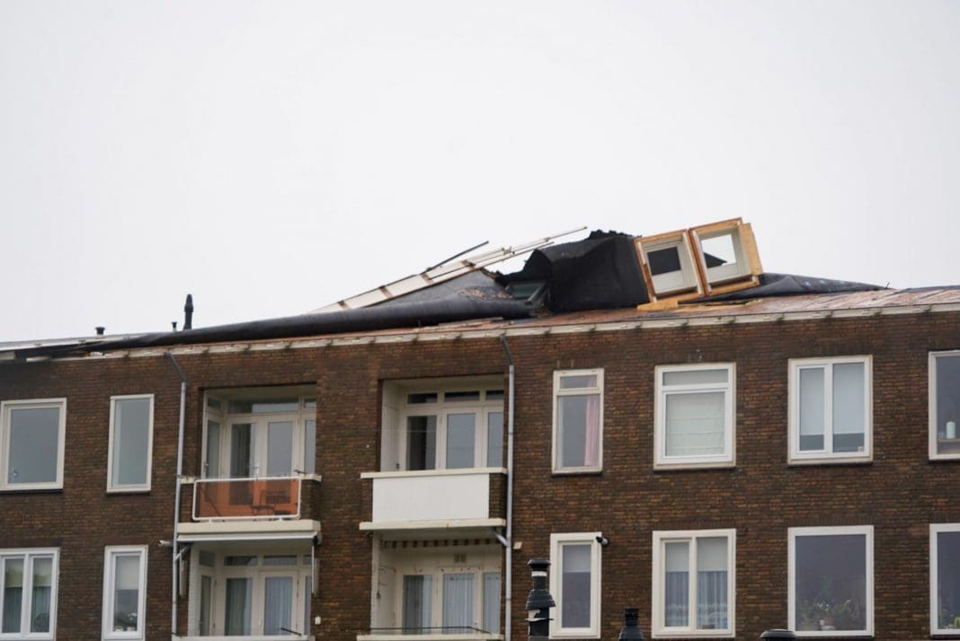 Bewoners werden zondagmiddag uit hun woningen gehaald nadat de harde wind vat kreeg op het dak en de dakbedekking over een lengte van ongeveer 30 meter wegrukte. De schade is zodanig dat in sommige appartementen de buitenlucht te zien is door het beschadigde dak.