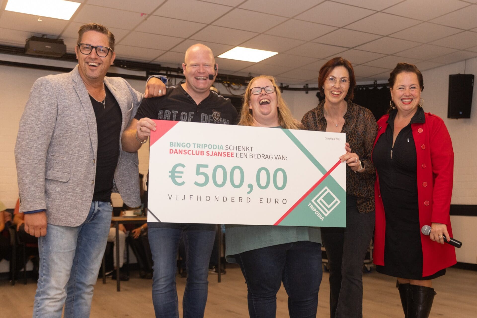Dansclub Sjansee bestaat uit vijftig leden met een beperking en vijftien vrijwilligers die wekelijks met elkaar dansen in Tripodia. Daarnaast organiseren ze voor de tweede keer het Nederlands kampioenschap G-dansen in sporthal Cleijn Duin op 4 november. Om dit te kunnen financieren zijn de leden van Sjansee al druk bezig om geld in te zamelen met bepaalde acties. De cheque van Tripodia was een welkome aanvulling, wat resulteerde in een extra vreugdedansje. Tripodia kon de cheque beschikbaar stellen door de opbrengsten van de eigen weekbingo.