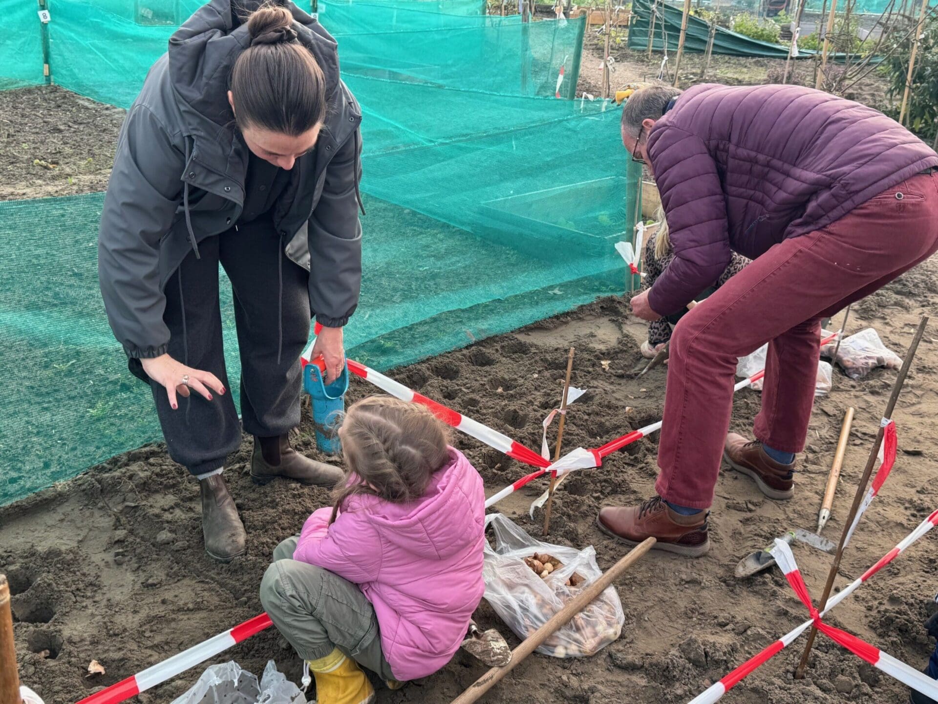 Kinderen van de winterschooltuinlessen op de ‘Zanderijtuinders 2.0 / Duinlandjes’ in de Katwijkse Duinvallei hebben woensdagmiddag 13 november bloembollen geplant. De bloembollen zijn afkomstig van Bulbs4Kids, die de kinderen zo op een leuke manier kennis laat maken met bloembollen en de natuur. Wanneer de tulpen, krokussen, narcissen en blauwe druifjes vanaf het vroege voorjaar in de algemene bloementuin bloeien, is de schooltuin één en al kleur! Dan kleurt dit gebied net zo kleurrijk als bij de vroegere Zanderijtuinders en hun bollenteelt. Dus dan zijn er vast en zeker ook weer bollenpellers nodig, net als in vroegere jaren!