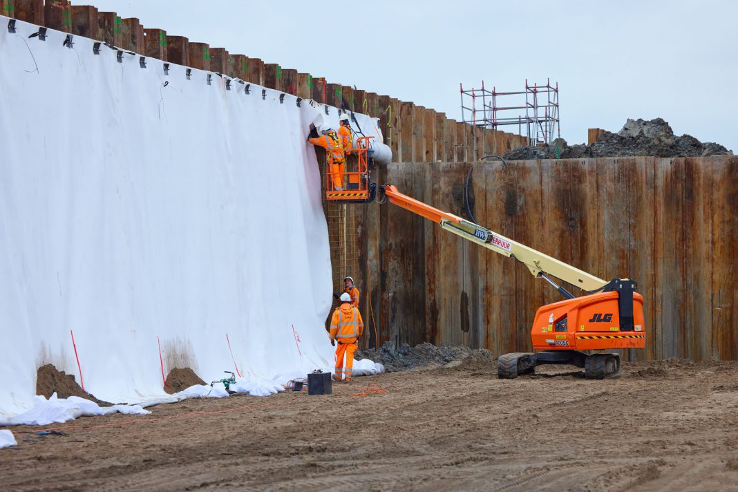 Als eerste stap worden damwanden aangebracht aan weerszijden van de bouwkuip. Daarna volgt het injecteren van de waterremmende gel, via 92.000 slangetjes, voor het vormen van een gellaag van een meter dik. Om droog te kunnen werken, wordt daarna per compartiment tijdelijk grondwater weggepompt.