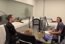 Jean Rooker in gesprek met Dieuwertje Heus, leerkracht van de Julianaschool.