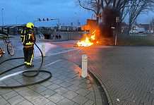 Naast het complex De Bloem is vrijdagmorgen even na elf uur een veegmachine in vlammen op gegaan.