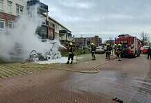 Veegmachine in vlammen op naast De Bloem