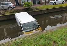 In het centrum van Rijnsburg is maandag kort na het middaguur een busje het water in gerold. Er zijn geen gewonden gevallen. Het busje...