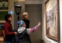 In gezelschap van dochter Juliette en kleinzoon Siddhartha overhandigde mevrouw Monique van Duijvenvoorden op 11 december het schilderij ‘Prins Hendrikkade’ aan de voorzitter van...