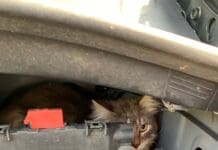Kat Marley kilometers verderop teruggevonden onder motorkap van auto