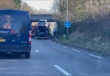 Een vrachtwagen geladen met auto’s heeft zich dinsdagmorgen klemgereden op de N206 onder het viaduct bij de Zeeweg. Dat blijkt uit beelden op social...
