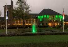 Gemeentehuis groen verlicht