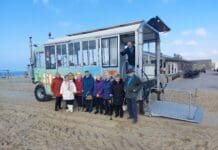 De gasten van Zonnebloem Katwijk-Valkenburg genoten ervan weer eens op het strand te zijn. Dankzij de Strandrups kon er een mooie tocht gemaakt worden...