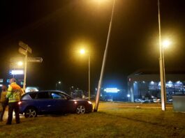 Man rijdt tegen paal op rotonde, rent daarna weg
