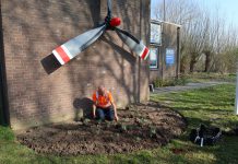 Maandag hebben hoveniers van de afdeling groenvoorziening van de gemeente Katwijk een 'Witte Anjerperkje' aangelegd bij het Bezoekerscentrum vliegveld Valkenburg.