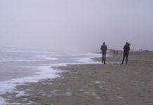 De Katwijkse kust krijgt het maandagmorgen zwaar te voortduren door storm Corrie. Op de Boulevard worden voetgangers en hier en daar een verdwaalde fietser...