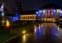Het gemeentehuis is donderdag en vrijdag uitgelicht in de kleuren van de Oekraïense vlag. Een jaar na de start van de Russische invasie in...