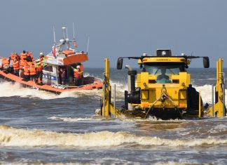 De weg tussen het botenhuis van de KNRM en het strand is relatief kort. Je zou dus zeggen, dat na een alarmering de boot...