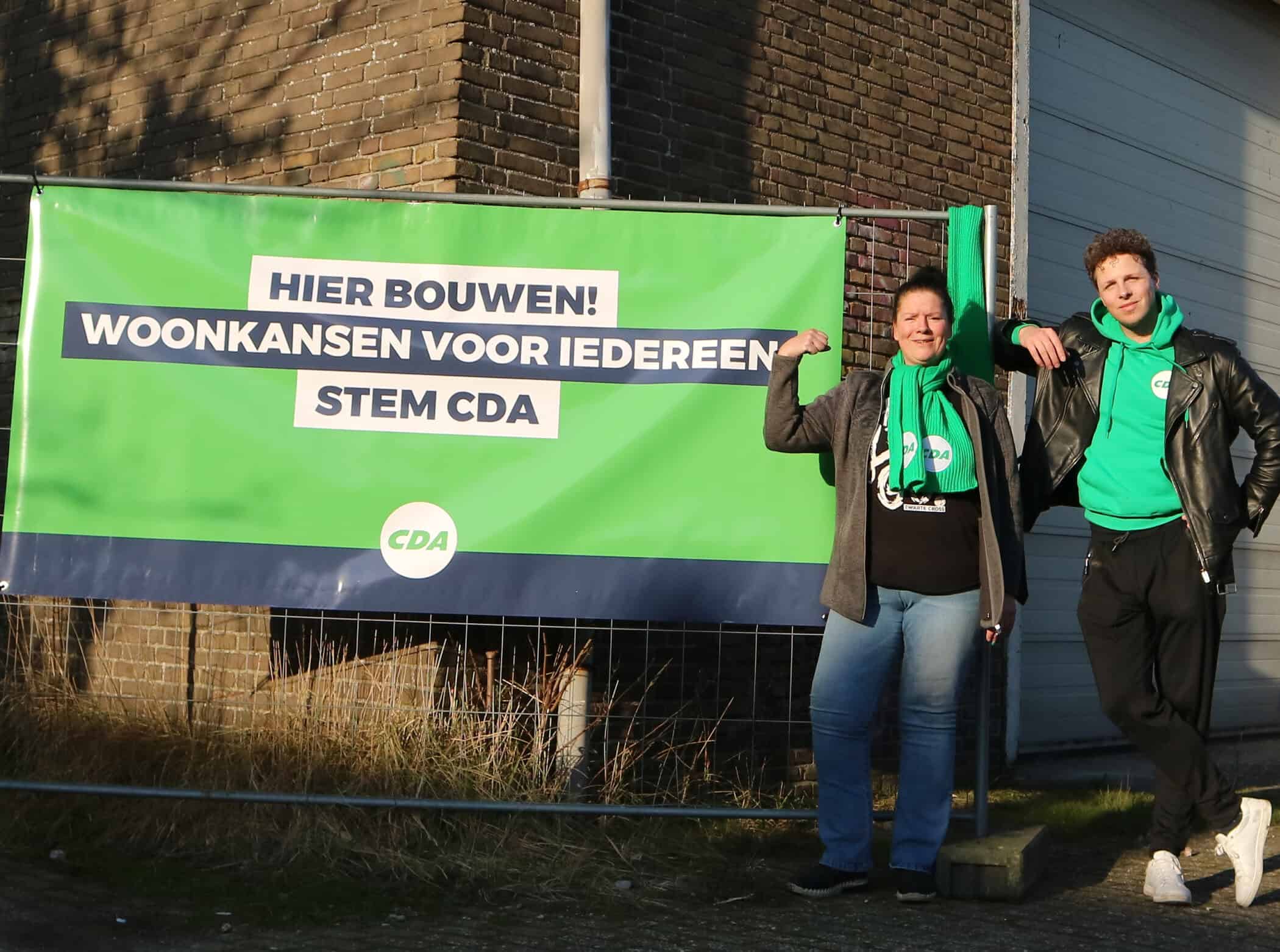 Tensen en Van der Nagel vroegen vorig jaar op ludieke wijze aandacht voor deze locatie met de banner ‘hier bouwen: woonkansen voor iedereen’ (zie foto). Tensen: “Wat ons betreft stopt het niet hier. Er zijn nog veel meer locaties in onze gemeente waar snel gebouwd kan worden. Wat dacht je van ’t Ambacht? Horn fase 2? Boerslaan en Helmbergweg? Tijdelijke woningen op ’t oude Vliegkamp Valkenburg? Werk aan de winkel dus.”