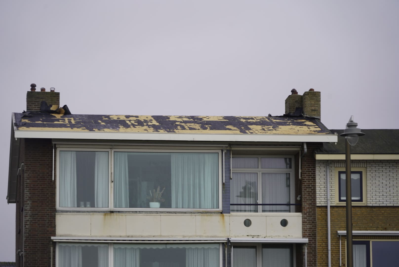 De brandweer heeft opgeschaald naar middel hulpverlening en kwam met diverse voertuigen ter plaatse. Er zijn geen gewonden gevallen. De brandweer heeft de dakbedekking verwijderd. Elders aan de Boulevard is ook een dak beschadigd.