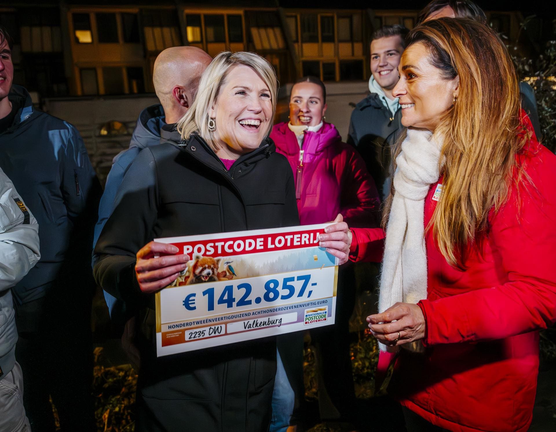 Goed nieuws voor deelnemers van de Postcode Loterij die meespelen in Valkenburg. In een straat is de SuperPostcodeprijs van 1 miljoen euro gevallen. De dertien geluksvogels die meespelen met de winnende postcode winnen bedragen van 71.428 euro tot 142.857 euro, afhankelijk van het aantal loten waarmee iemand meespeelt. Postcode Loterij-ambassadeur Quinty Trustfull verrast de winnaars met het mooie nieuws.Â