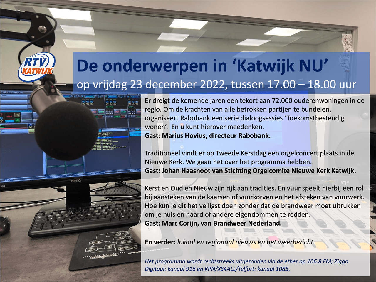 Home Omroepbericht Dit in Katwijk NU op vrijdag 23 december Dit in Katwijk NU op vrijdag 23 december Door Peter Onderwater - 23 december 2022 Reclame Reclame Laatste Nieuws Met olie besmeurde zeevogels ook hier aangetroffen 29 oktober 2025 Samen sterk voor veilig en gastvrij voetbal in gemeente Katwijk 29 oktober 2025 Dronecampus opent deuren voor techliefhebbers 29 oktober 2025 Nu op de Radio