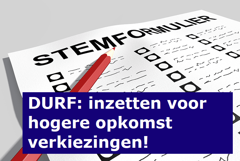 Een belangrijk doel van DURF is om meer mensen te betrekken bij de lokale politiek. Volgend jaar zijn er weer gemeenteraadsverkiezingen en wij zullen ons inzetten voor een zo’n hoog mogelijke opkomst. Om de opkomst te bevorderen kan ook de gemeente zich inzetten en daarmee de betrokkenheid van inwoners versterken. In 2018 besloot 62 procent van de Katwijkers, Rijnsburgers en Valkenburgers naar de stembus te gaan om een nieuwe gemeenteraad te kiezen. Dit was hoger dan het landelijk gemiddelde van 55 procent, maar toch valt er nog een wereld te winnen. Nog steeds blijven vier op de tien kiezers thuis in onze gemeente bij de lokale verkiezingen.