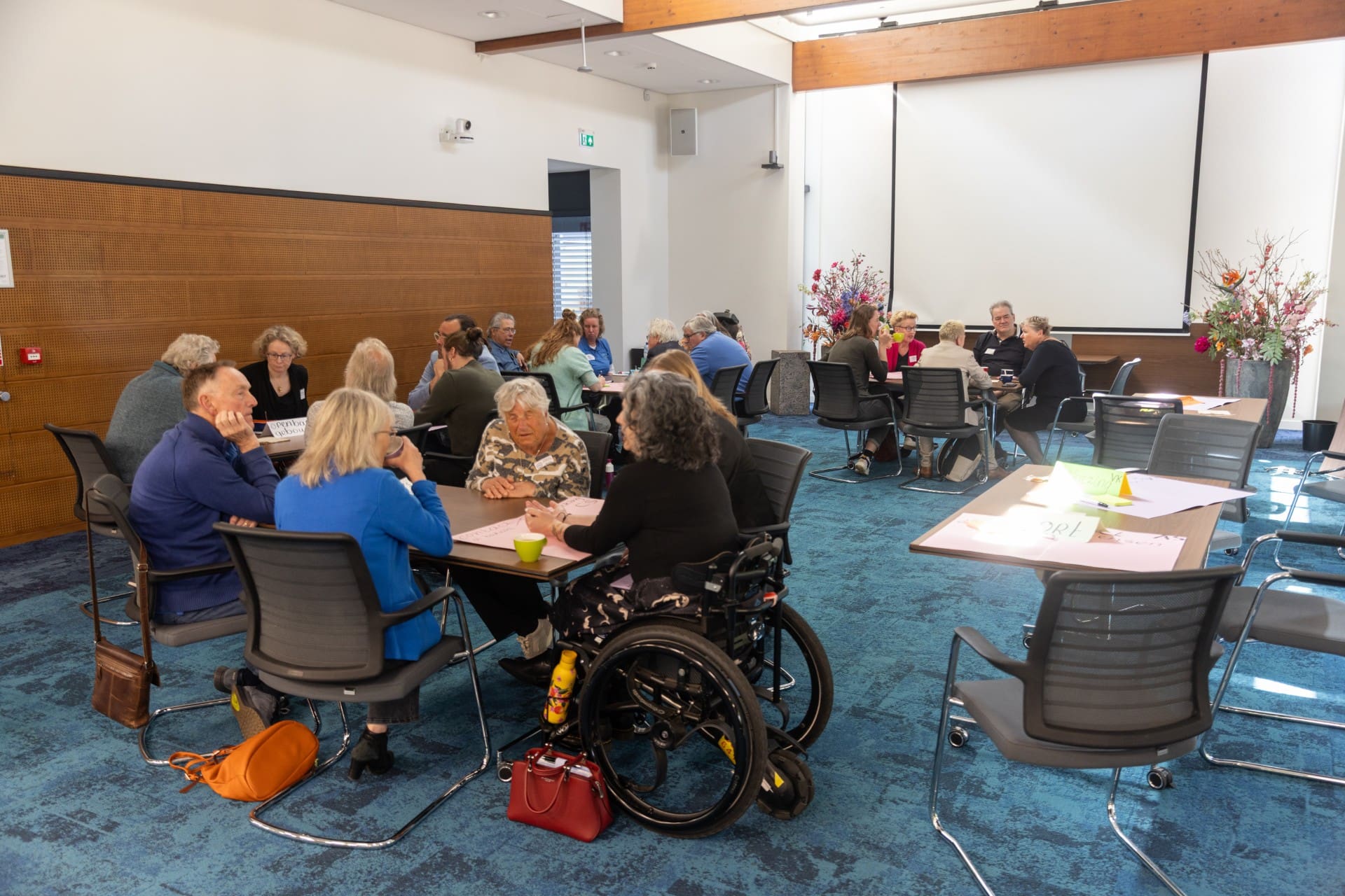 De bijeenkomst stond in het teken van kennismaken, kennis delen en elkaar inspireren. Voorzitter Marijke van Duijn opende de dag met een warm welkom, waarna ruim de tijd werd genomen voor een uitgebreide voorstelronde. Vervolgens gingen de deelnemers in drie gespreksrondes uiteen om per thema – zoals sport, toegankelijkheid en communicatie – successen en knelpunten te bespreken. De opbrengsten werden gebundeld en op grote vellen zichtbaar aan de muur gehangen.