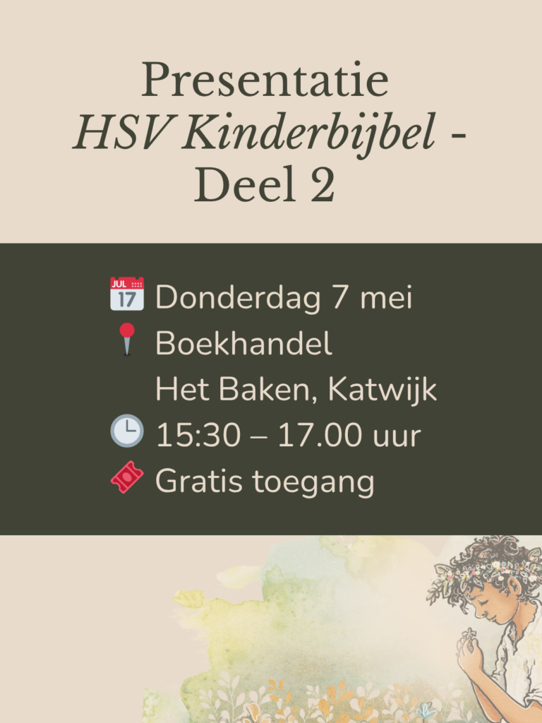 Op donderdag 7 mei D.V. wordt bij boekhandel Het Baken in Katwijk het langverwachte vervolg op een geliefde kinderbijbel gepresenteerd: HSV Kinderbijbel deel 2. Dit nieuwe deel bouwt voort op de belangstelling voor het eerste deel en richt zich speciaal op kinderen uit de bovenbouw van de basisschool.