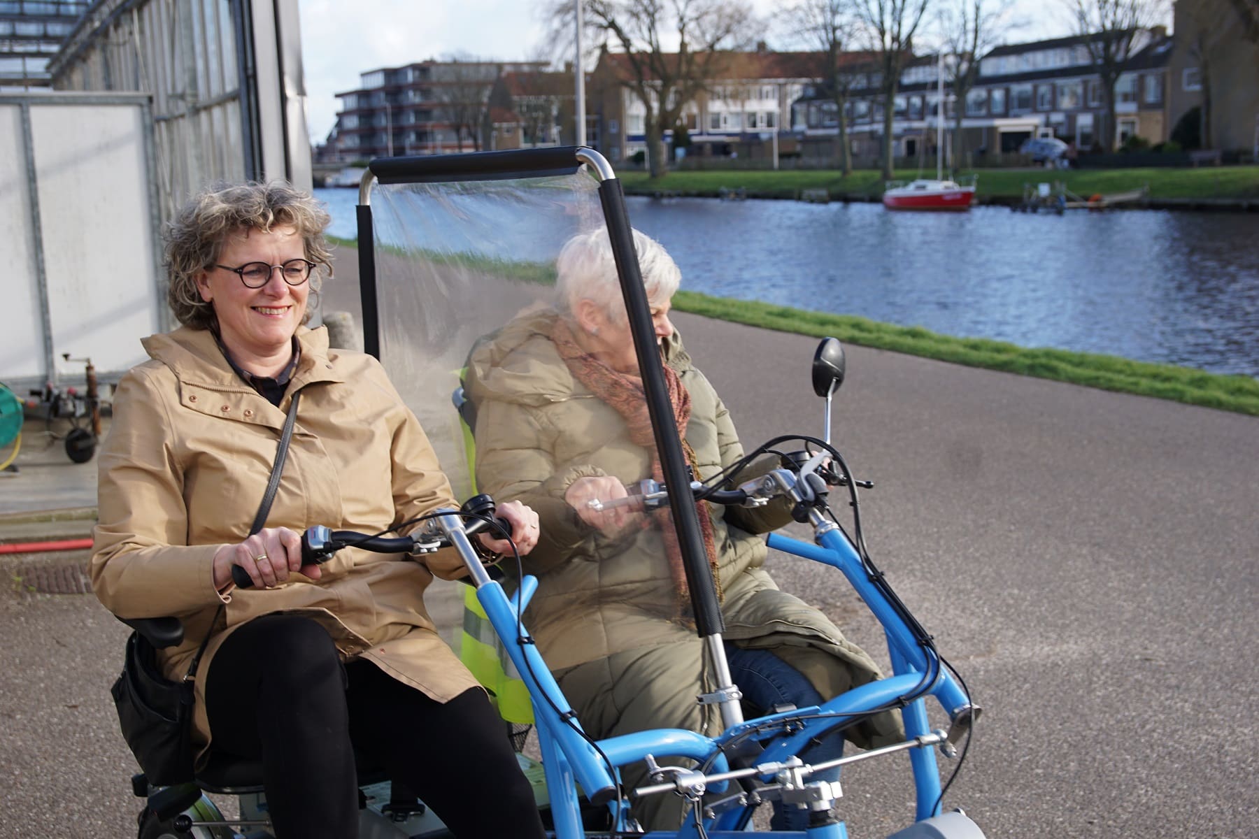 Sinds mei vorig jaar is Fietsmaatjes Katwijk officieel gestart. Afgelopen november kregen zij de eerste twee duofietsen in hun bezit. De derde fiets is inmiddels ook geleverd en een vierde is onderweg. Nog voordat deze fietsen arriveerden, konden vrijwilligers zich al aanmelden als fietsmaatje. Zo ook wethouder Corien van Starkenburg. Net zoals alle andere vrijwilligers maakte de wethouder eerst een proefritje.