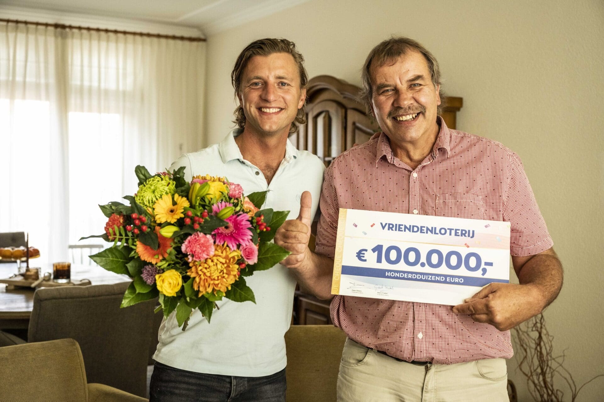 Een grote verrassing voor Dina uit Katwijk. Zij heeft in de trekking van de VriendenLoterij een bedrag van 100.000 euro gewonnen. Dirk, de man van Dina, werd onlangs door VriendenLoterij-ambassadeur Jan Versteegh verrast met de cheque.