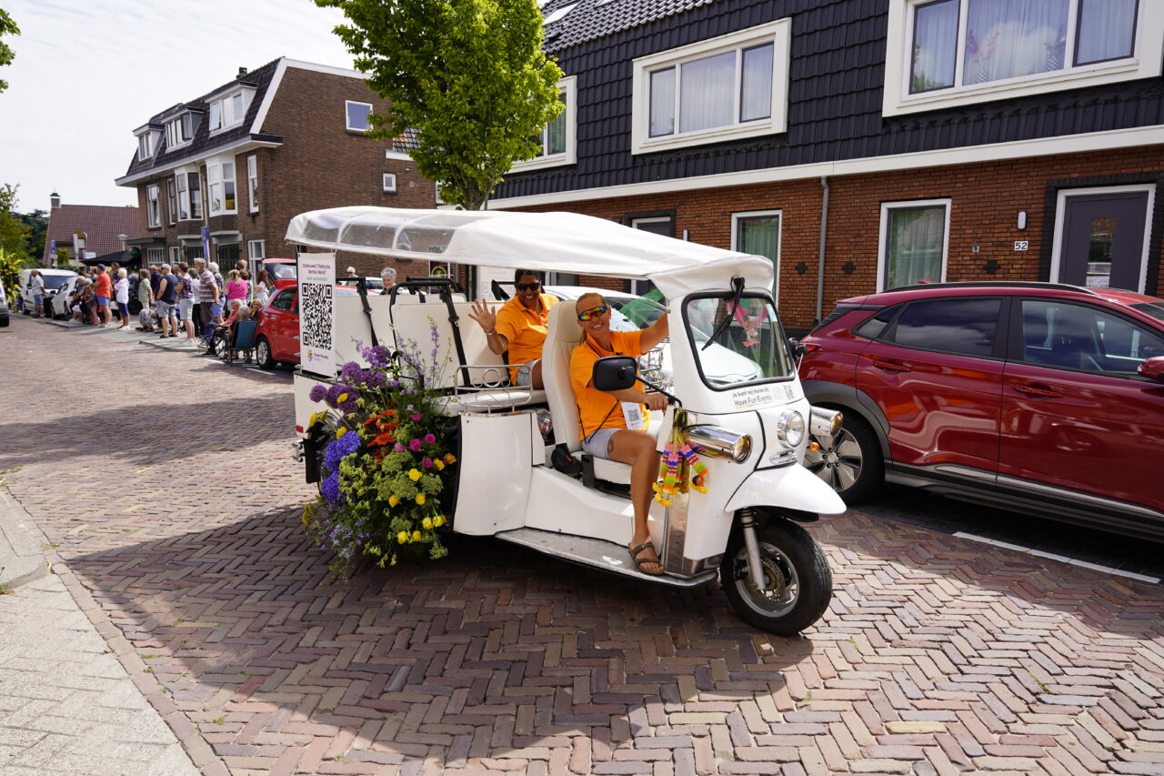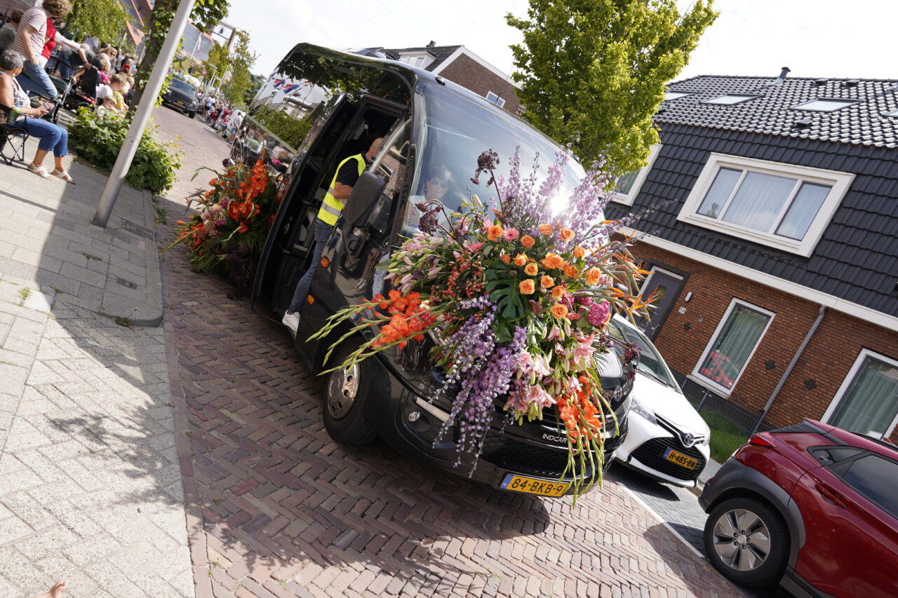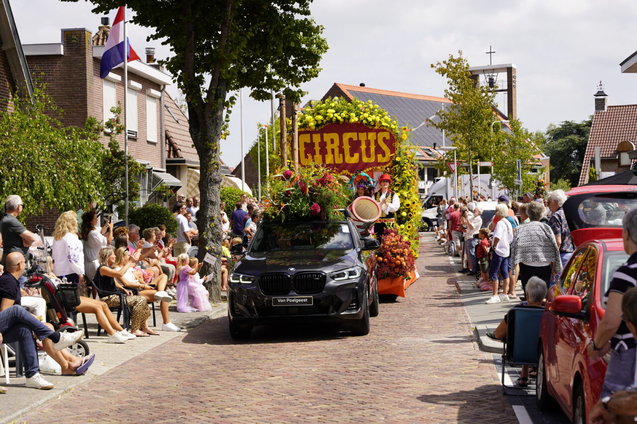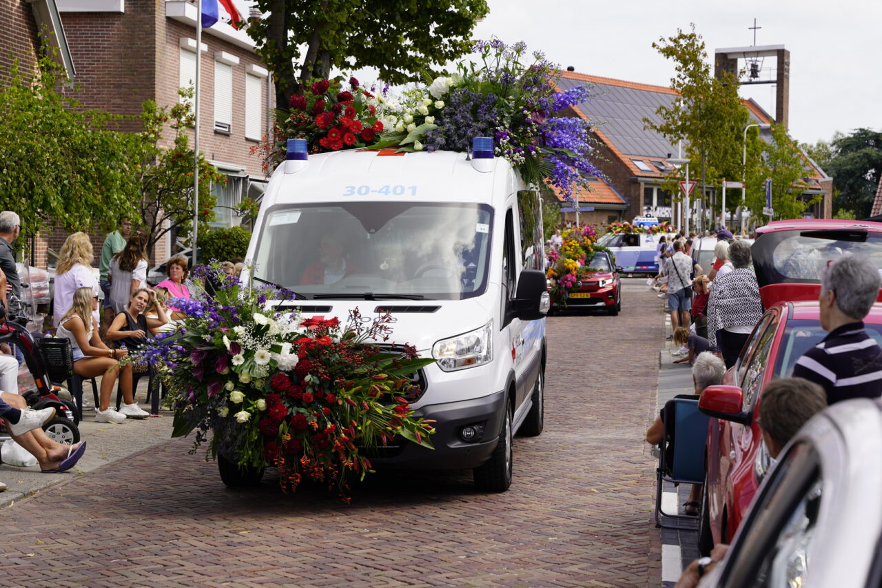 De parade bood variatie in voertuigen, van klassieke oldtimers tot moderne elektrische auto’s, aangevuld met bloemstukken op fietsen, motoren en kleinere wagens.