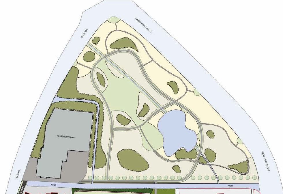 Op dit moment is het stuk grond bij de Kwakelwei eigendom van een particulier. Er kan dus niet zomaar een park gerealiseerd worden op deze locatie.