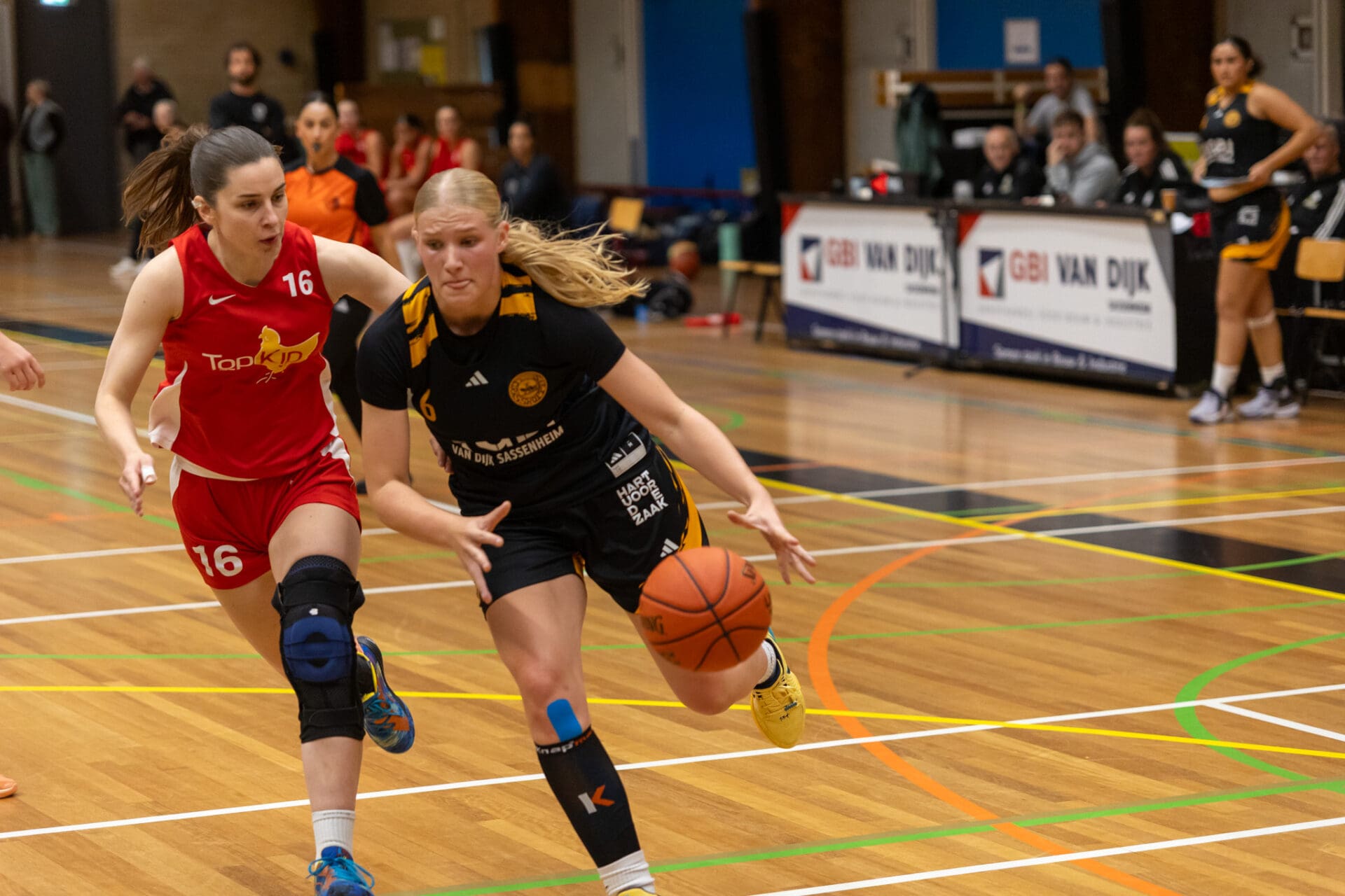 Scores: Lotte van Kruistum 30 (+17 reb), Liselot Kulk 24 (+7 reb), Karin Kuijt 23 (+9 reb, +6ass), Fleur Kuijt 8 (+9 reb), Floor van Duijn 6, Safa Ramdhani 5, Thirze van der Plas 5, Sofie Kuijt.