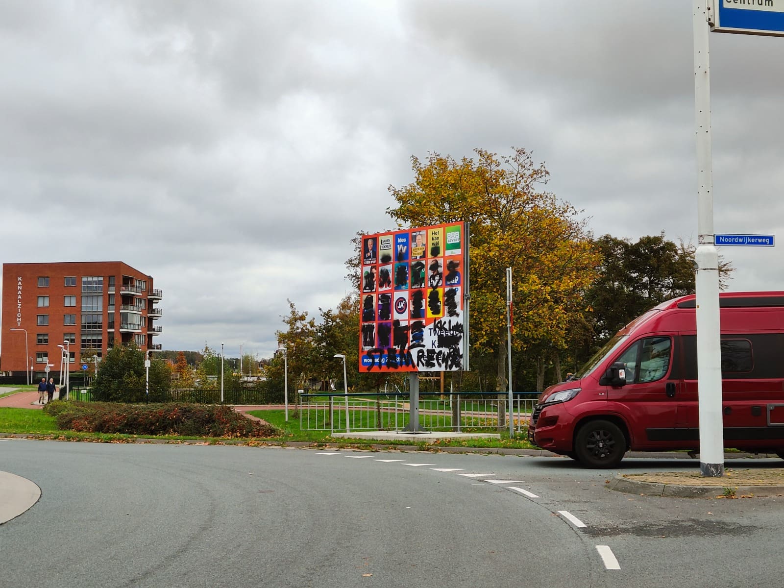 De gemeente Katwijk heeft aangifte gedaan nadat een verkiezingsbord bij de rotonde Voorhouterweg-Noordwijkerweg in Rijnsburg met zwarte verf is bespoten. Op het bord, waarop posters van verschillende politieke partijen hingen, zijn vrijwel alle affiches onleesbaar gemaakt.