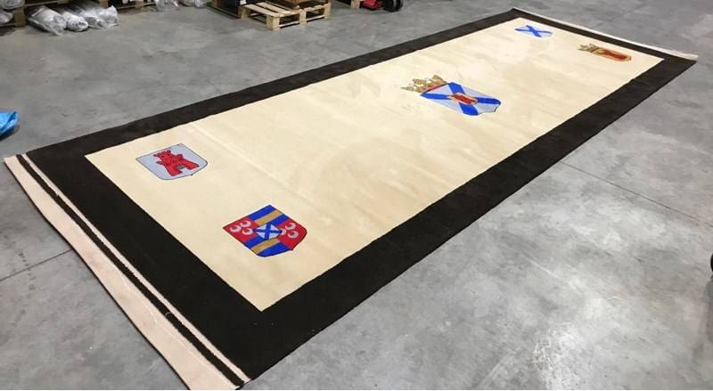 ‘Brink&Campman Carpet’ biedt het kleed aan. Staat; nieuw en ongebruikt. Inmiddels is er al 500 euro geboden, exclusief belastingen. Daar kwamen de eerste vraagtekens al, immers het kleed in het gemeentehuis is zeker niet ongebruikt. In de loop der jaren zijn daar al diverse schoenen overheen gelopen. En afgelopen donderdag lag het kleed er nog gewoon.