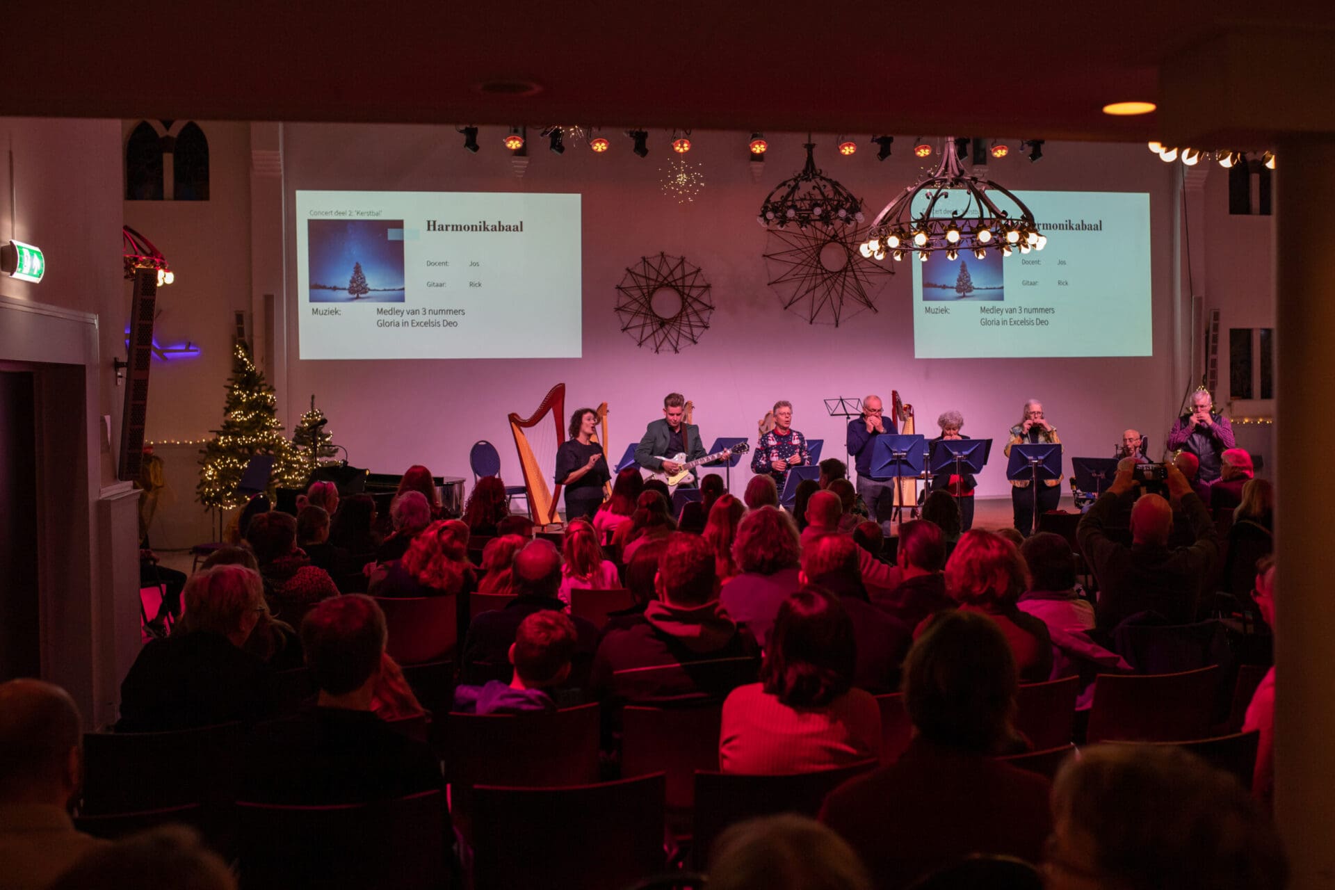Een bijzonder moment was de bijdrage van mondharmonicagroep Harmonikabaal. Hun uitvoering van ‘Gloria in excelsis Deo’ bracht het publiek spontaan in zang, wat zorgde voor een mooie verbinding tussen muzikanten en toeschouwers.