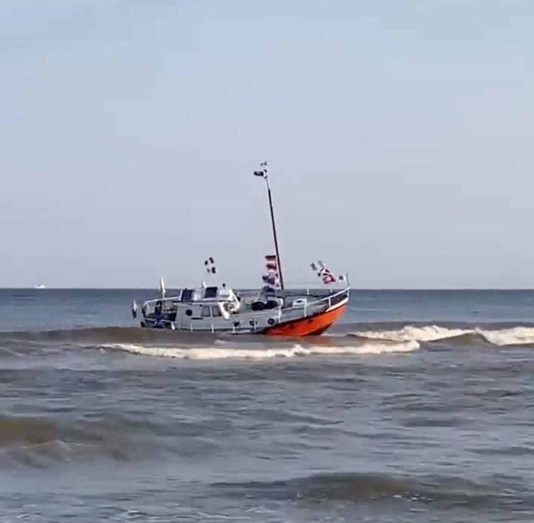 Strandbezoekers hadden zaterdag een extra attractie op strand. Het vaartuig dat door de schipper was verlaten trok veel bekijks van het publiek.