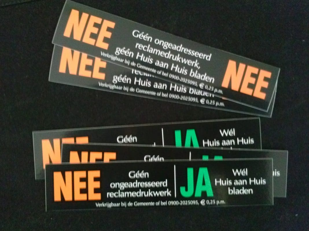 Donderdagavond stemde de gemeenteraad in met het voorstel van PvdA en D66. De fractie van DURF had eerder nog bezwaren, en ziet meer in andere digitale manieren om duidelijk te maken dat iemand wel of geen reclame wil.