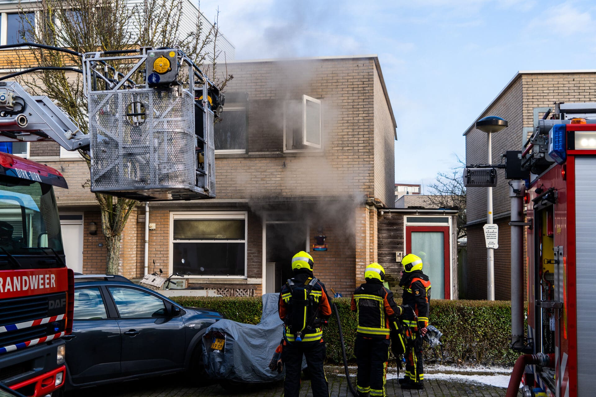 De brandweer Katwijk kwam met twee bluswagens en een autoladder ter plaatse om het vuur te bestrijden. De bewoner had zichzelf in veiligheid kunnen brengen, maar de hond was naar verluid nog binnen.