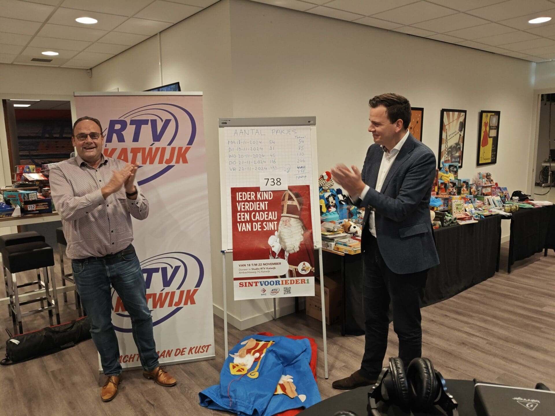 Honderden cadeaus zijn deze week gebracht voor de actie Sintvoorieder1 van RTV Katwijk in samenwerking met Omroep West. Inmiddels staat de studio van RTV Katwijk al vol cadeaus. In totaal zijn er deze week 738 cadeaus ingezameld.