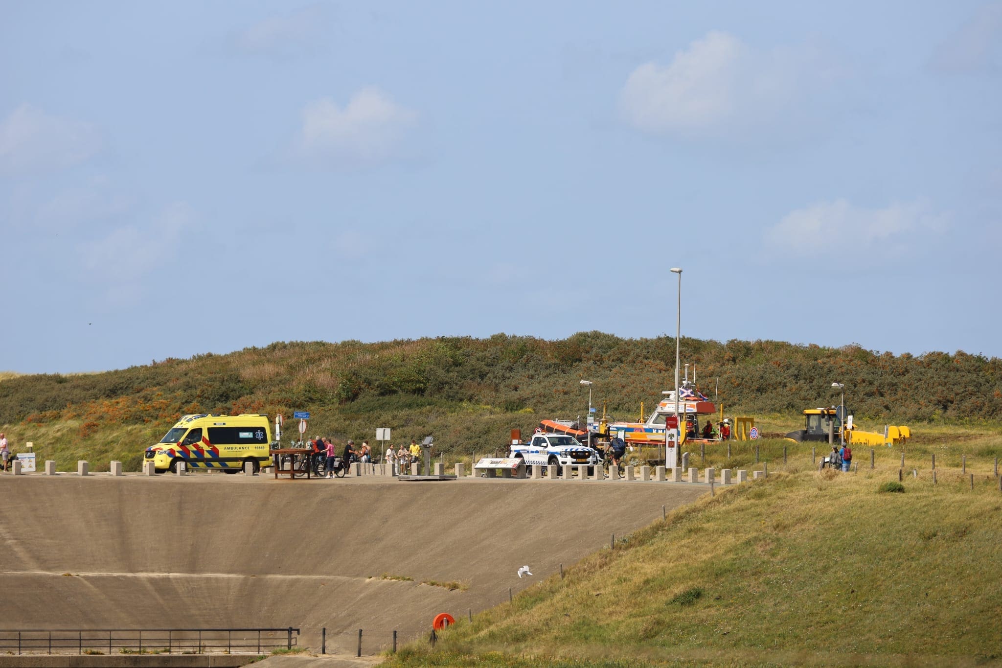 Woensdagmiddag rond 14.30 uur is op het strand bij de Noordduinseweg in Katwijk een grootschalige hulpactie opgestart na een melding van een reanimatie. Een traumahelikopter landde op het strand en meerdere ambulances en de reddingsbrigade werden ingezet.