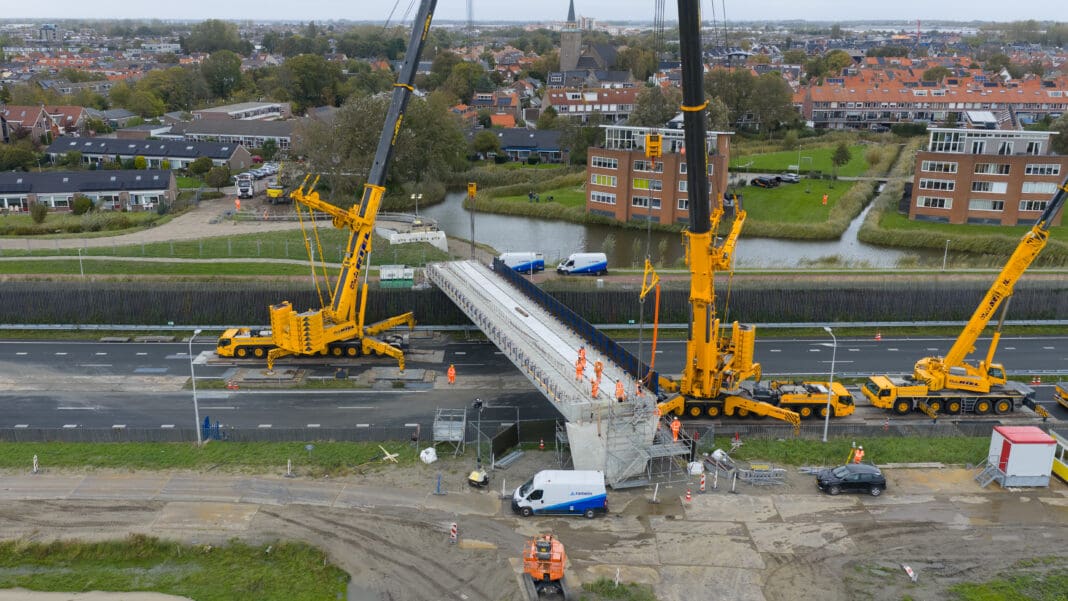 Het nieuwe fiets- en voetgangersviaduct over de N206 ter hoogte van de Oude Broekweg in Valkenburg – het Broekwegviaduct – krijgt steeds meer vorm. Op maandag 6 oktober zijn de bijna 50 meter lange betonnen liggers door aannemer Boskalis op hun plek gehesen. Een grote operatie waarvoor de N206 afgesloten moest worden.
