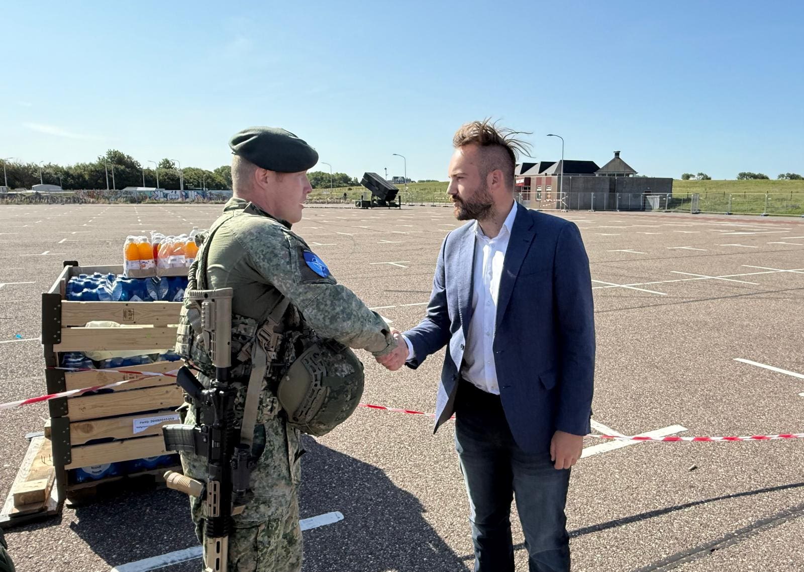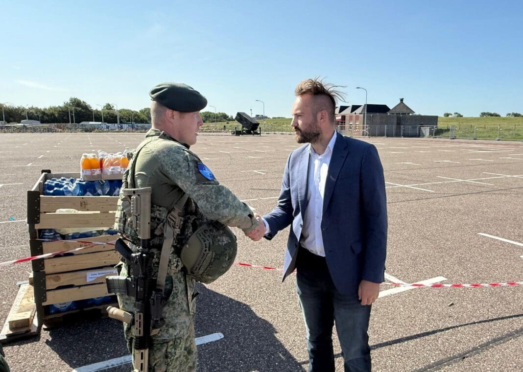 Wethouder Sonny Spek bracht donderdag namens de gemeente een bezoek aan de luchtverdediging op het parkeerterrein bij jongerencentrum Scum. Hij sprak daar met medewerkers van Defensie over de operationele inzet en de ontvangst in de regio. Volgens Spek verlopen de voorbereidingen volgens planning en voelt Defensie zich welkom in Katwijk. Als blijk van waardering overhandigde Defensie een wapenschild aan de wethouder.