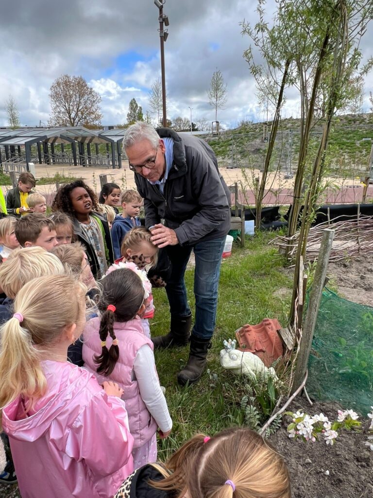 Zo kwam een kleuterklas van RKBS de Horizon een dag vóór de opening van het Bioklok Tuintje al langs bij Bol. De kinderen zaaiden zaadjes van bloemen en kregen ook een zakje mee. Daarnaast namen ze een kijkje bij de wormen in het wormenhotel en de kippen die Bol heeft.