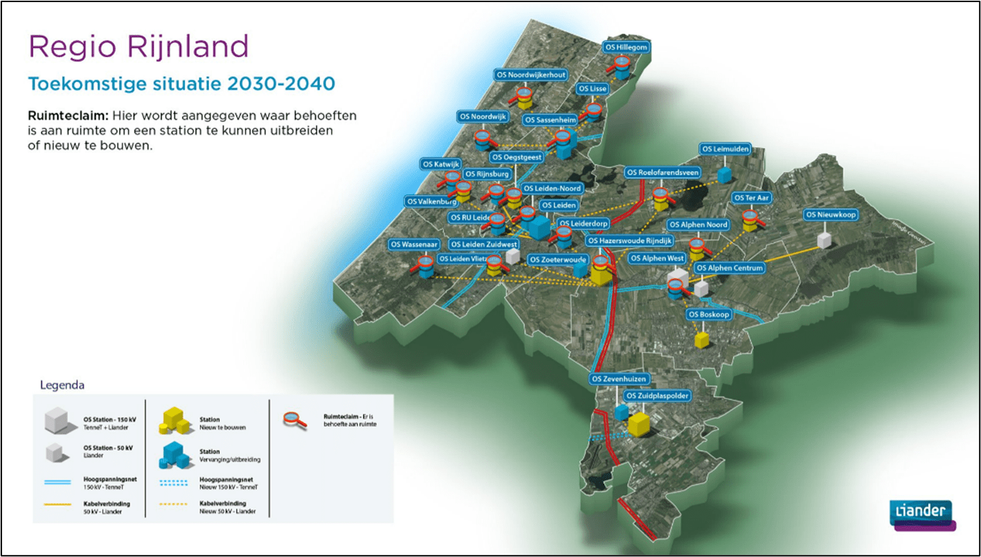 Ook in Holland-Rijnland is de netbeheerder op veel plaatsen aan de slag met de uitbreiding van het elektriciteitsnet. Tot 2030 worden 16 grote elektriciteitsstations uitgebreid en 10 extra stations gebouwd. Daarnaast wordt bijna 600 kilometer nieuwe elektriciteitskabel gelegd en worden de komende twee jaar ruim 200 nieuwe transformatorhuisjes in de wijken geplaatst. Om het elektriciteitsnet toekomstbestendig te maken investeert Liander alleen al in de periode 2022 – 2024 bijna € 300 miljoen in het elektriciteitsnet in Holland-Rijnland.