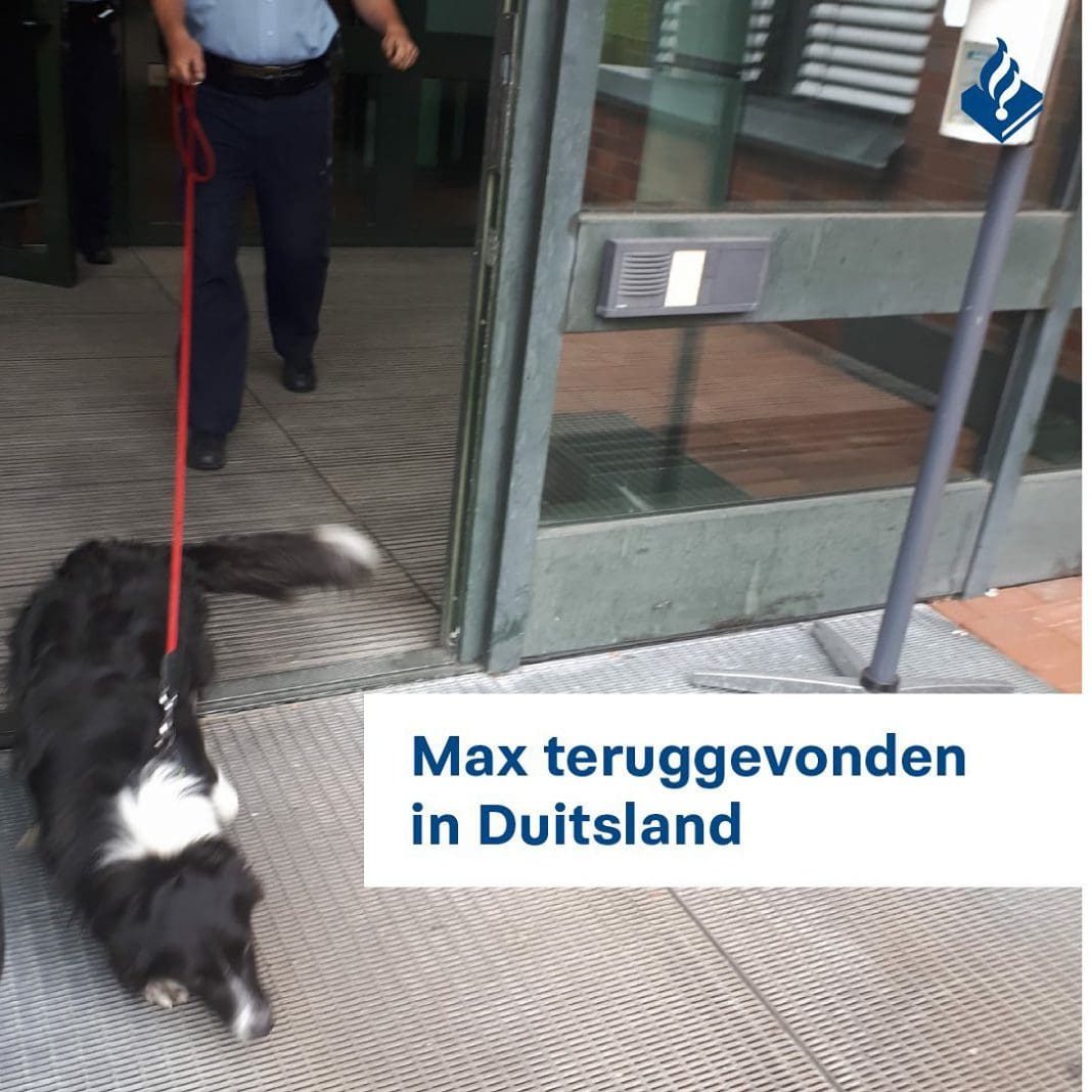Na onderzoek door de wijkagent en tussenkomst van Interpol hebben Duitse agenten vrijdag onderzoek gedaan in een woning in Duitsland. Max werd in de woning aangetroffen en is na controle bij een dierenarts weer met zijn baasjes herenigd. Op Facebook schrijven zij: “Wat een blijdschap. Max is bijna met de voordeur zijn eigen huis ingegaan. Toen de Tjalmaweg in zicht kwam rook hij de zee. Zo mooi om mee te maken. Bedankt voor alle hulp. Wij zijn jullie allemaal heel dankbaar.”