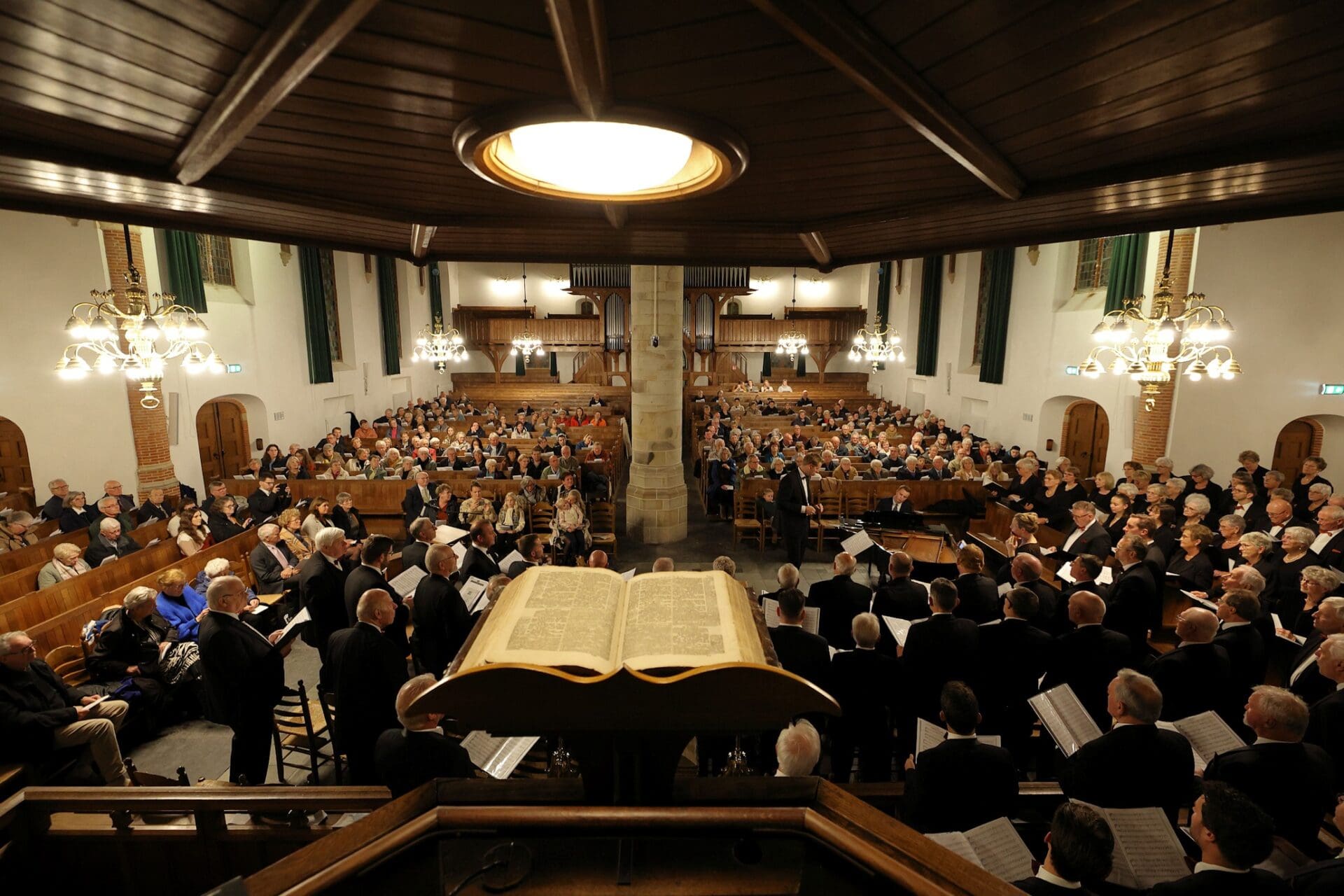 Hoewel het regenachtige weer niet uitnodigde hebben toch velen afgelopen zaterdag 4 november de weg naar de Oude Kerk gevonden. De koren Deo Juvante uit Huizen en Eben-Haëzer uit Katwijk gaven onder leiding van dirigent Hugo van der Meij een indrukwekkend concert. Achteraf bleek het programma via YouTube 4500 maal bekeken te zijn. Het was een mooi begin van de korenestafette die het jubileumcomité voor ogen heeft.