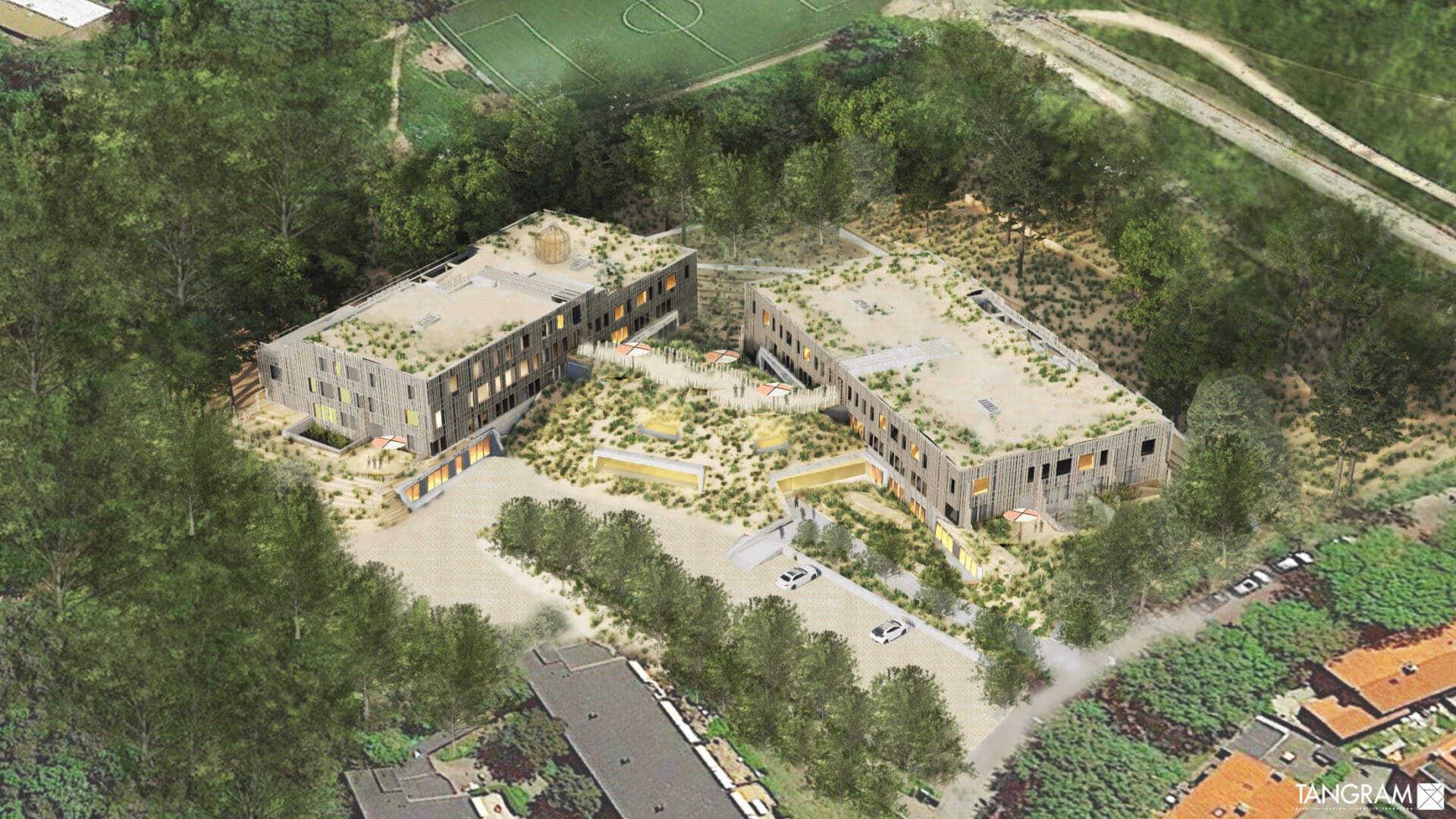 Het plan bevat ook een hospice, ruimte voor dagbesteding, restaurant en hoofdkantoor van DSV. DSV werkt voor het ontwerp samen met Tangram Architekten. Zij zijn erin geslaagd een prachtig ontwerp te maken dat naadloos past op de grens van duin en dorp. De bouw is bewust laag gehouden. Zo houden de bewoners het contact met de groene omgeving.