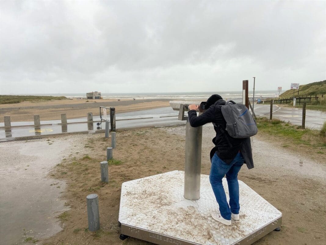 De Limescoop ziet er uit als een toeristische verrekijker, die uitnodigt tot gebruik. Kijkt men erdoor dan ziet men in Virtuel Reality de omgeving zoals hij was 1.800 jaar geleden, met op de juiste plaats de Brittenburg en de brede Rijndelta, die toen nog uitvloeide in zee en het strand een kilometer verder naar het westen.
